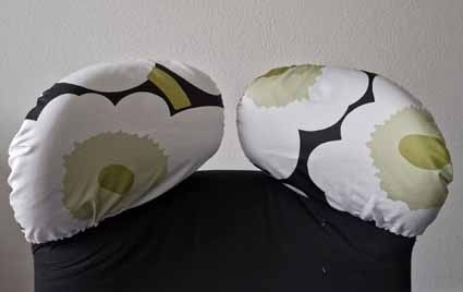 Marimekko Quilt.(Im Bild links) Links und rechts verfügbar. Preis 29 Euro/Stück.